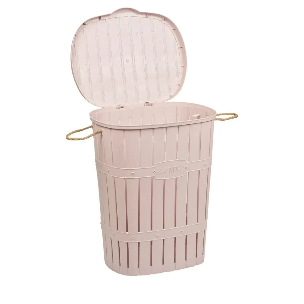 Еден од најпрепознатливите елементи кај оваа корпа за веш се декоративните јаже рачки. Тие обезбедуваат стабилен зафат и потпора при носење, а воедно додаваат топол, тренди изглед кој потсетува на природни и скандинавски стилови на уредување.