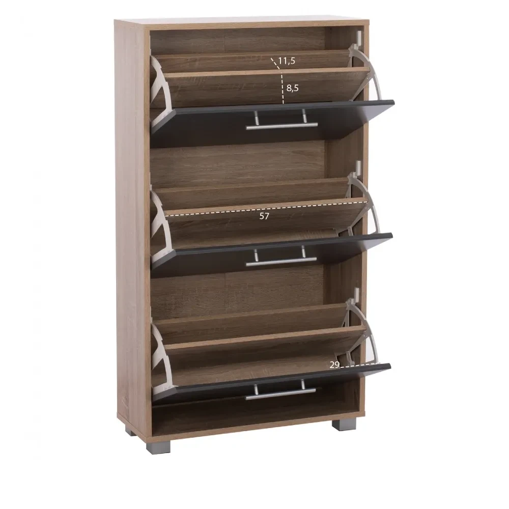 Фиокар за чевли на 3 нивоа е функционално решение за уредно складирање на обувки во домот. Конструиран е за оптимално искористување на просторот, со три навалувачки фиоки кои овозможуваат голем капацитет без зафаќање голема површина.
