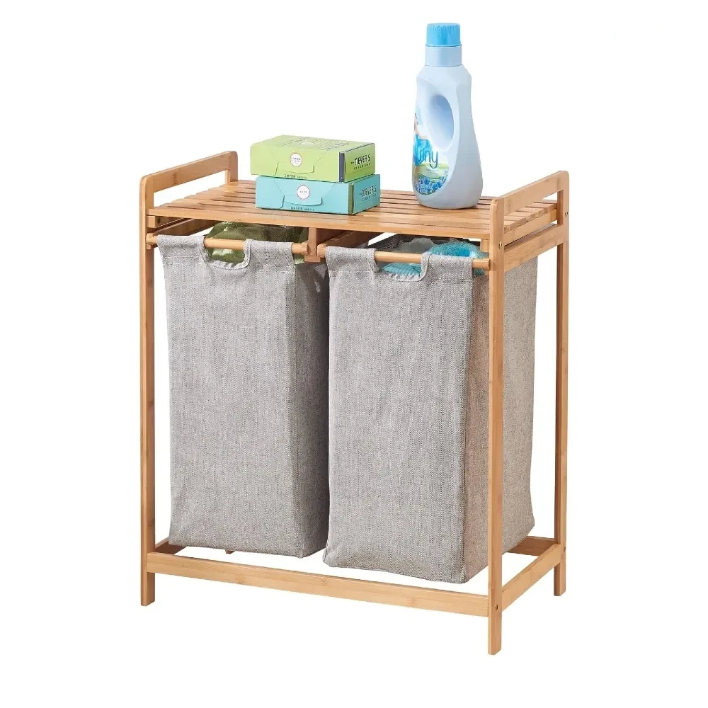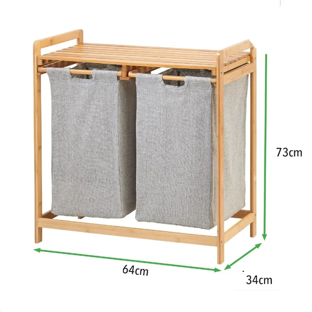 Сталажата е изработена од висококвалитетен бамбус кој нуди природен изглед и отпорност на влага. Нејзиниот модерен дизајн ја прави идеална за бања, спална или ходник. Со три текстилни торби, од кои една е со зголемен капацитет, оваа корпа нуди лесна категоризација на облеката – темна, светла и деликатна. Покрај тоа, горниот дел може да се користи како поличка за складирање пешкири, сапуни или декор.