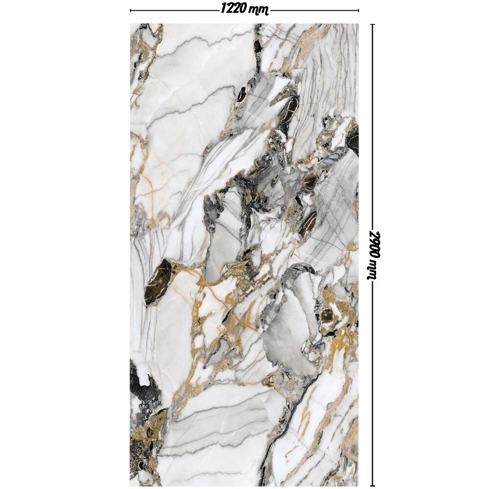 Инспириран од природниот мермер, Сиво и Златно создава чувство на длабочина и природна текстура, но со лесна и практична изведба. Благодарение на висококвалитетниот ПВЦ материјал, панелот е отпорен на влага, не ја впива прашината и лесно се чисти. Со димензиите 1220 mm x 2900 mm, овозможува покривање на големи површини без прекини и со минимални споеви.