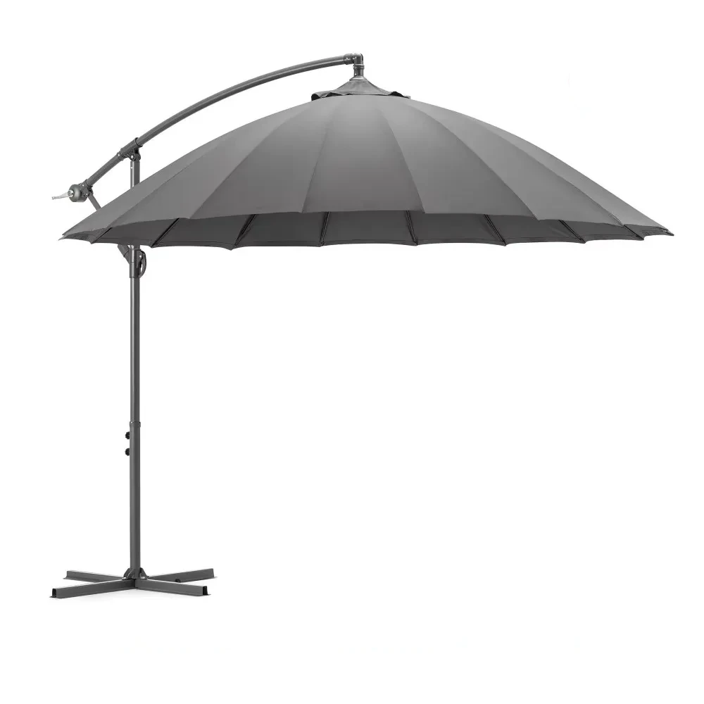 Чадорот сонце е произведен од високоиздржлив алуминиумски и челичен материјал, што гарантира долготрајност. Основата во форма на крст нуди силна поддршка, но за дополнителна стабилност потребно е додавање плочки или тежини (не се вклучени во пакетот).