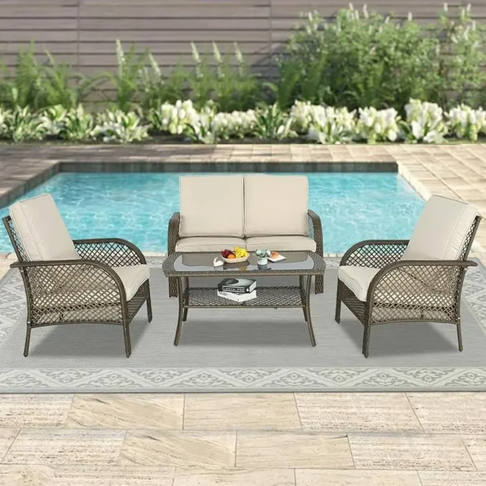 Материјал на плетиво: PE Wicker (отпорен на УВ зраци и атмосферски влијанија)