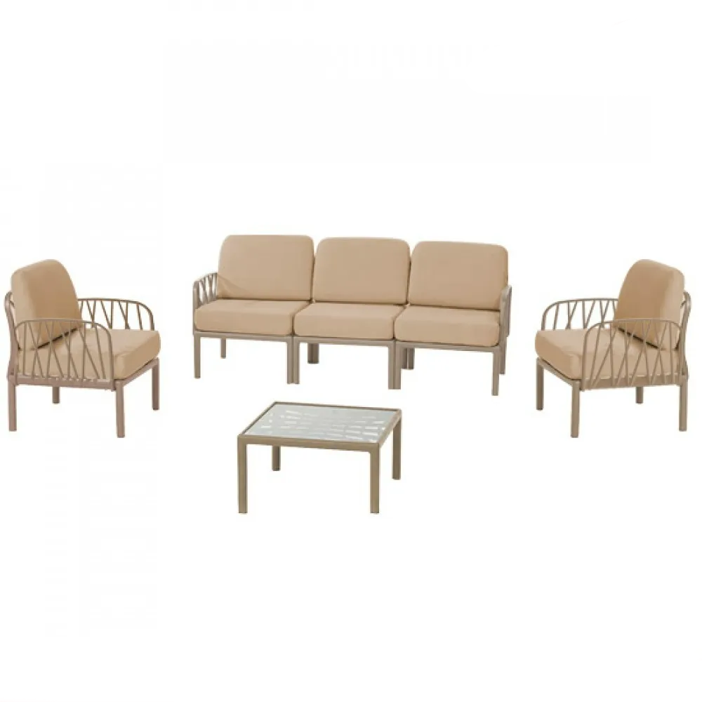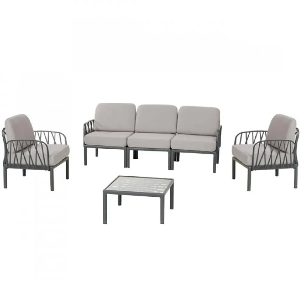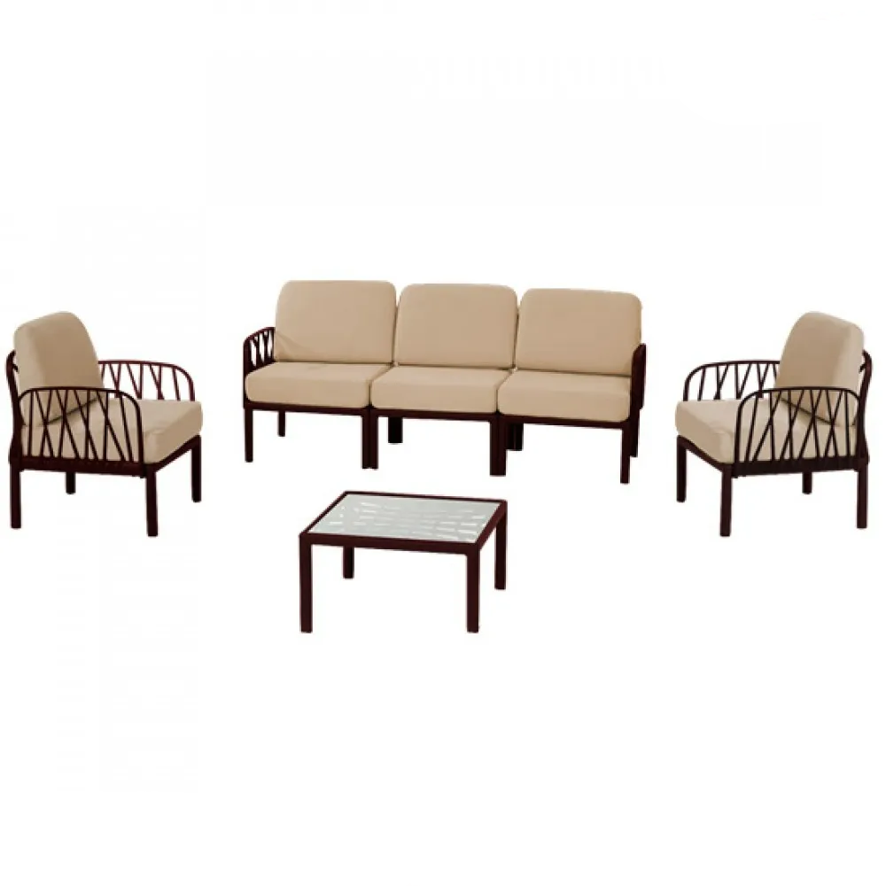 Содржи двосед, тросед, две фотелји и маса, со што обезбедува доволно простор за седење и релаксација. Совршена е за семејни дружења, пиење кафе или читање книга во опуштена атмосфера.