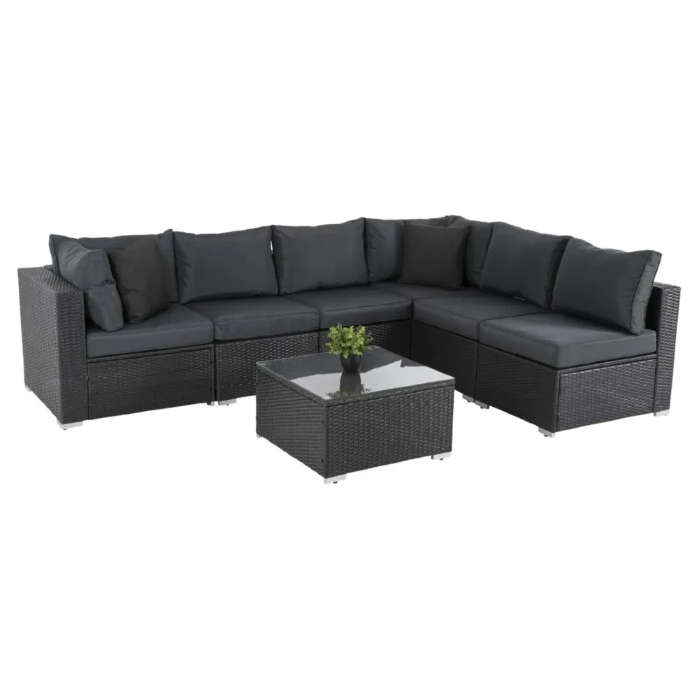 Гарнитура GREN претставува совршен избор за сите кои сакаат удобност и стил на отворено. Овој 7-делен комплет е идеален за тераса, двор или градина. Со својот елегантен дизајн и функционалност, тој ја збогатува секоја надворешна дневна соба. Благодарение на неговата разновидност, можете да го распоредите според вашиот простор и потреби. Тоа го прави одличен за семејни собири, дружби или моменти на одмор.