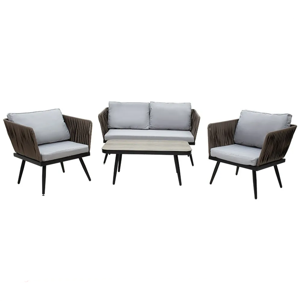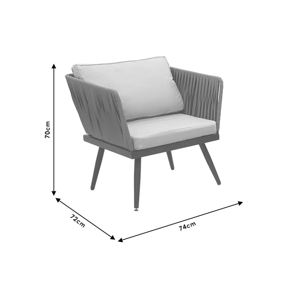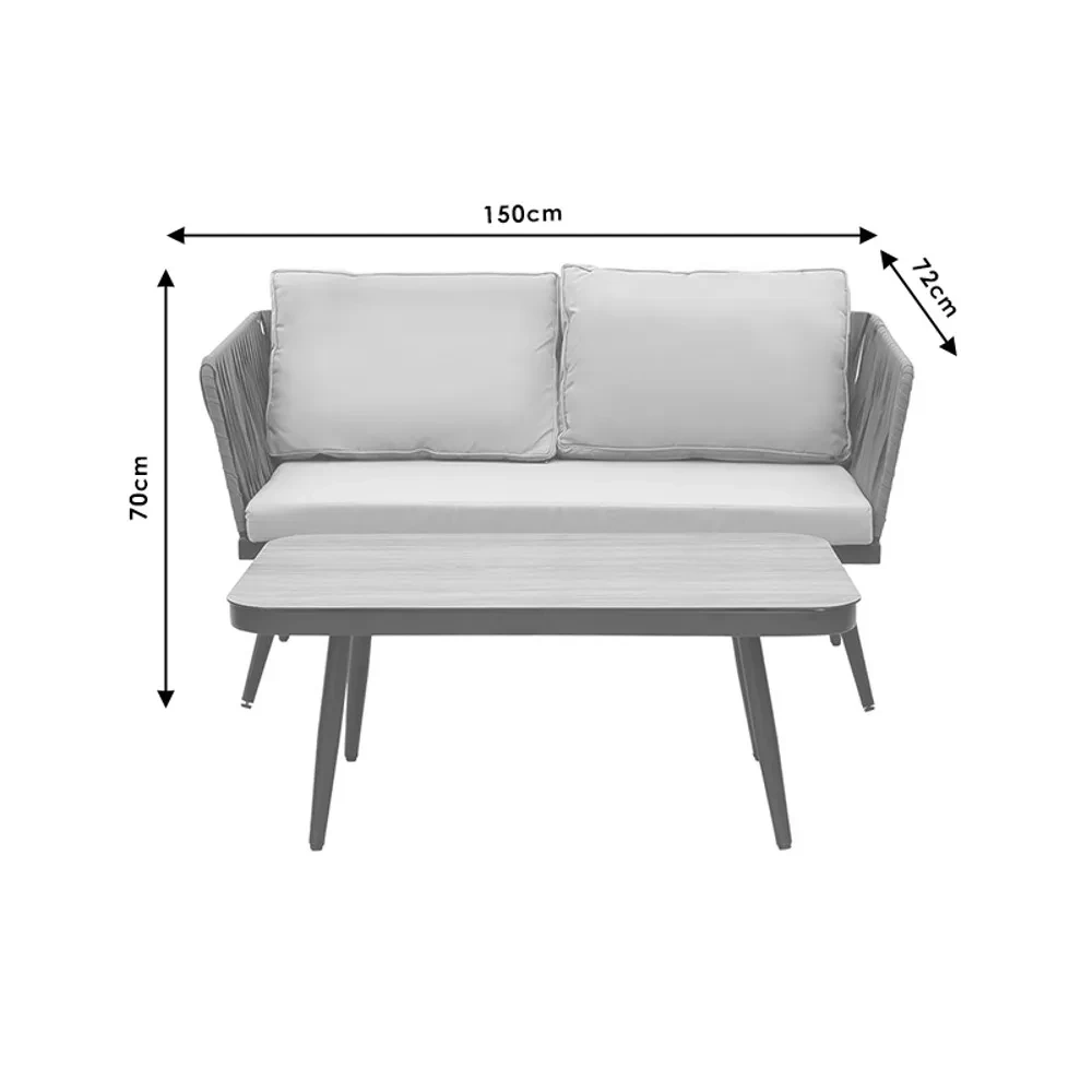 Создадете совршена атмосфера во вашиот двор или тераса со оваа гарнитура за градина „Ciel“ која нуди совршен комфорт и удобност. Оваа елегантна и практична гарнитура е изработена од висококвалитетни материјали, што ја прави идеална за надворешна и внатрешна употреба. Дизајнот комбинира модерен изглед со удобност, нудејќи ви пријатно искуство при секое седење.