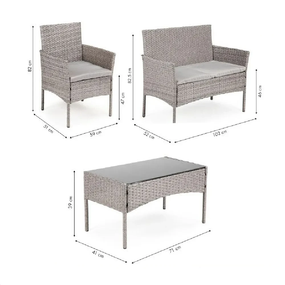 Комплет гарнитура Костас е идеален избор за секој што сака да создаде елегантен и удобен простор на отворено. Овој сет од четири дела комбинира висококвалитетни материјали со модерен дизајн, овозможувајќи долготрајност и удобност. Без разлика дали сакате да уживате на балконот, во градината или на терасата, гарнитурата Костас е совршен избор.