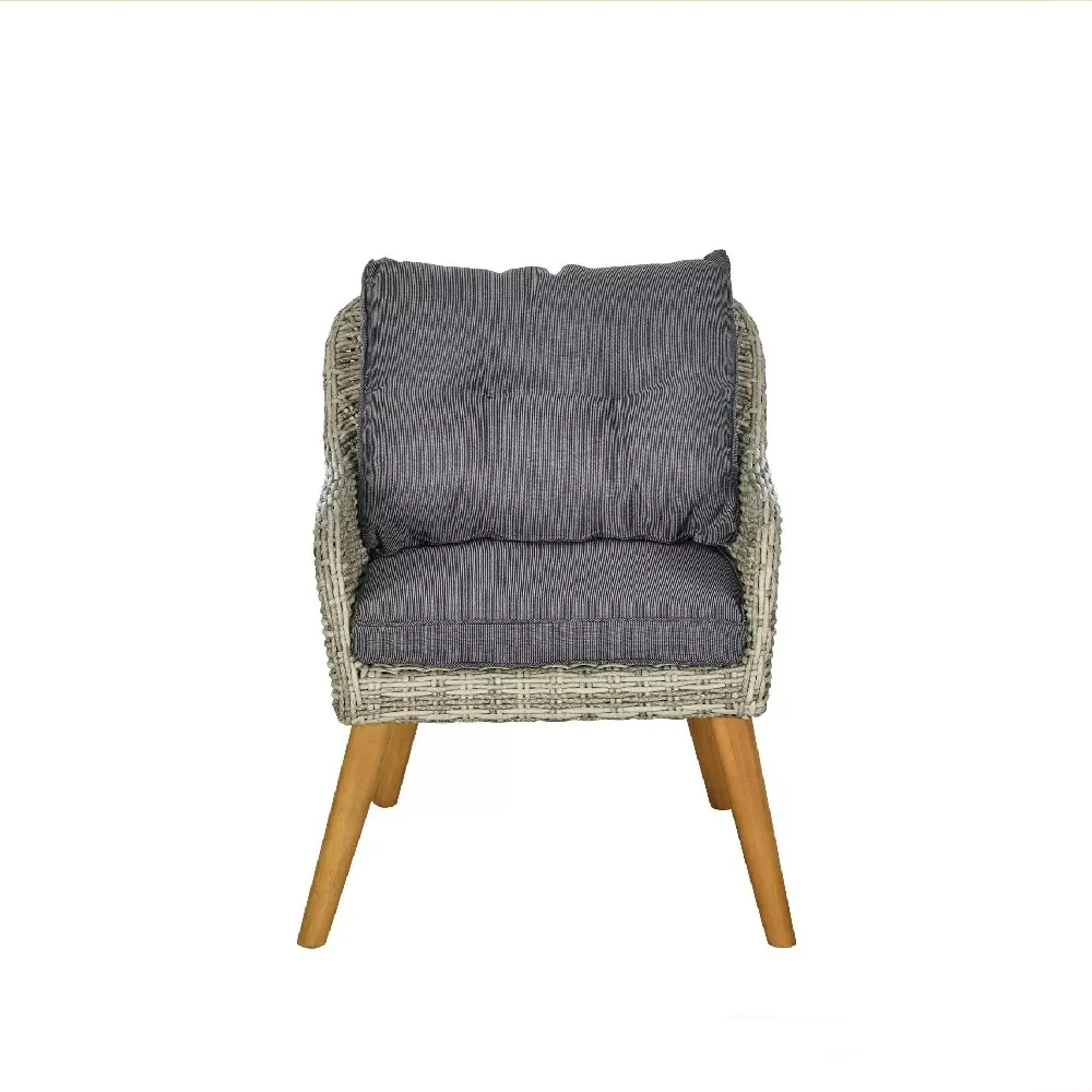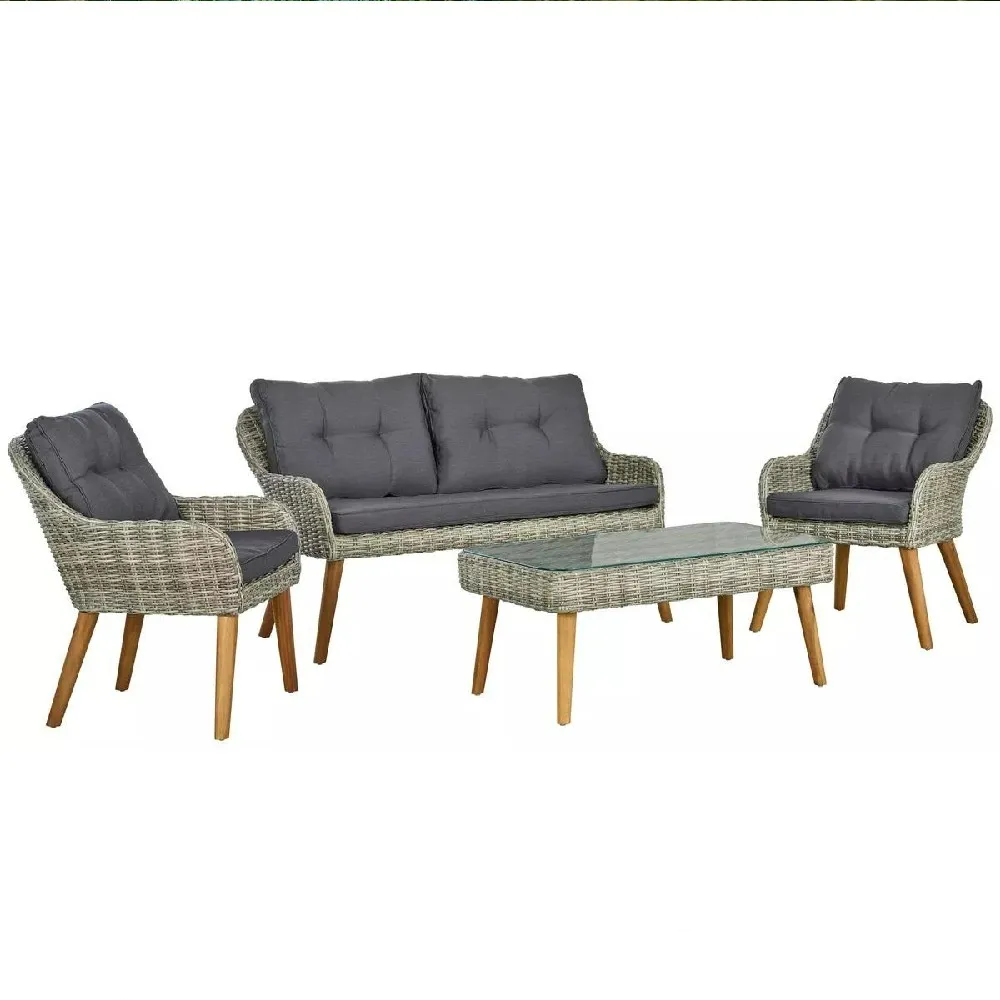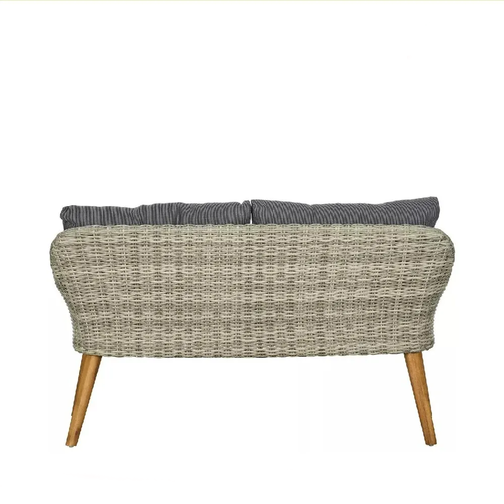 Гарнитурата е инспирирана од скандинавскиот стил и доаѓа во елегантна сива боја. Комбинацијата од имитација на ратан и челична конструкција со антикорозивен епоксиден премаз овозможува долготрајност и стабилност. Висококвалитетниот материјал е отпорен на УВ-зраци и влага, а за одржување не е потребна посебна грижа.