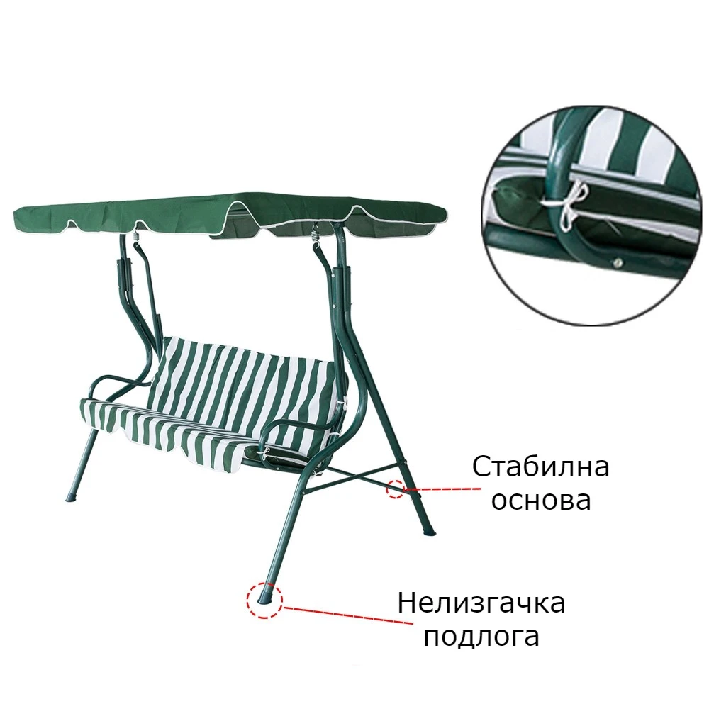 Нишалка за двор е одличен избор за секој што сака да создаде пријатен и релаксирачки агол во својата градина или тераса. Со својот модерен дизајн во зелена и бела боја, оваа лулашка веднаш внесува свежина и стил во надворешниот простор. Таа не е само декоративен елемент, туку и функционално решение за одмор и уживање.