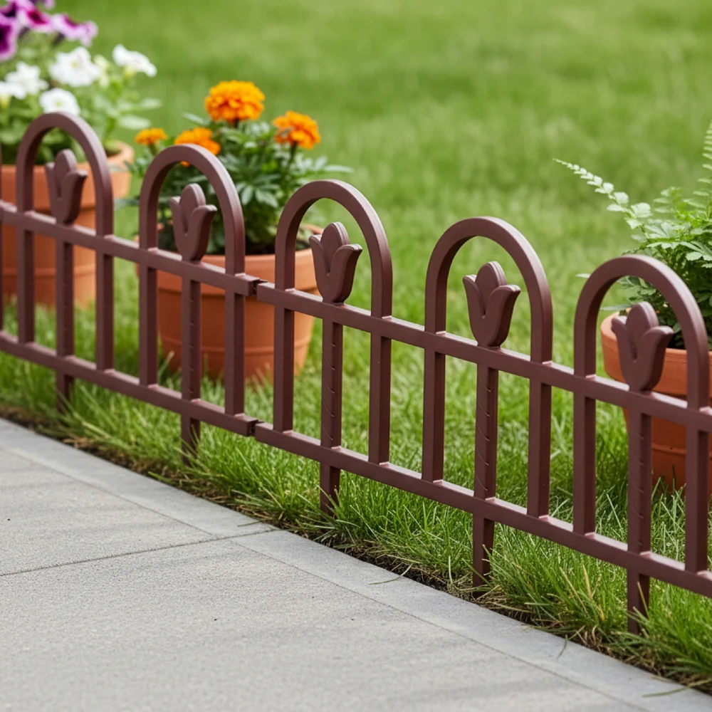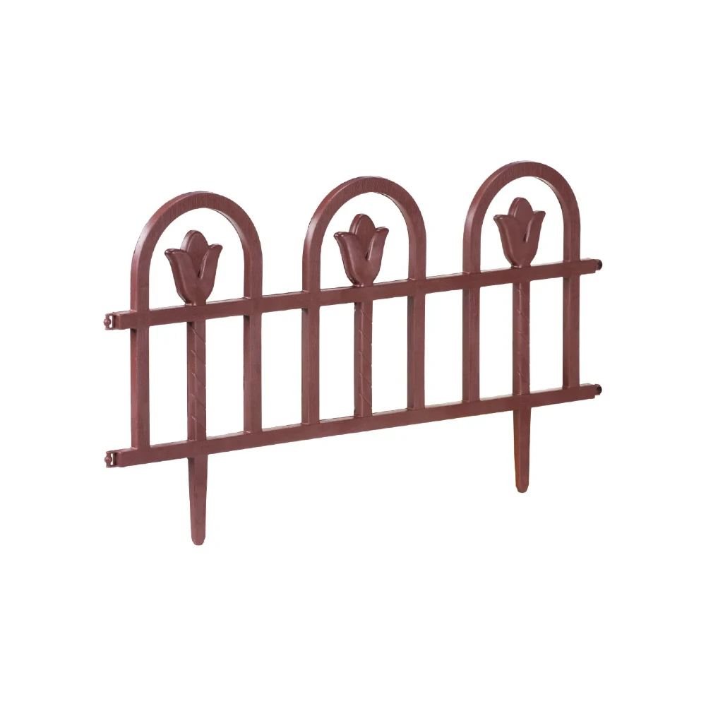 Ограда за двор MEGAPLAST – сет од 3 парчиња е практично и естетско решение за уредување на градина, тераса или двор. Со кафеава боја и декоративен дизајн, оваа ограда овозможува лесно дефинирање на границите околу цветни леи, тревници и патеки.