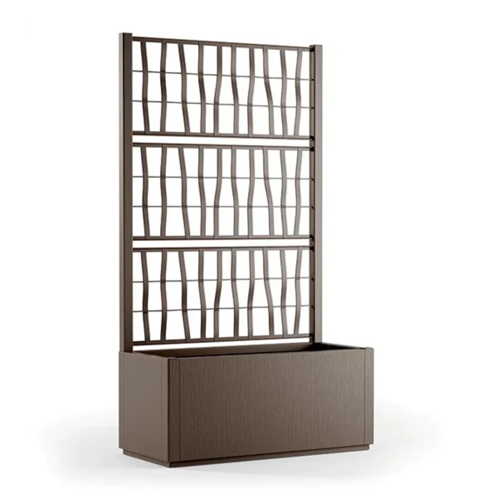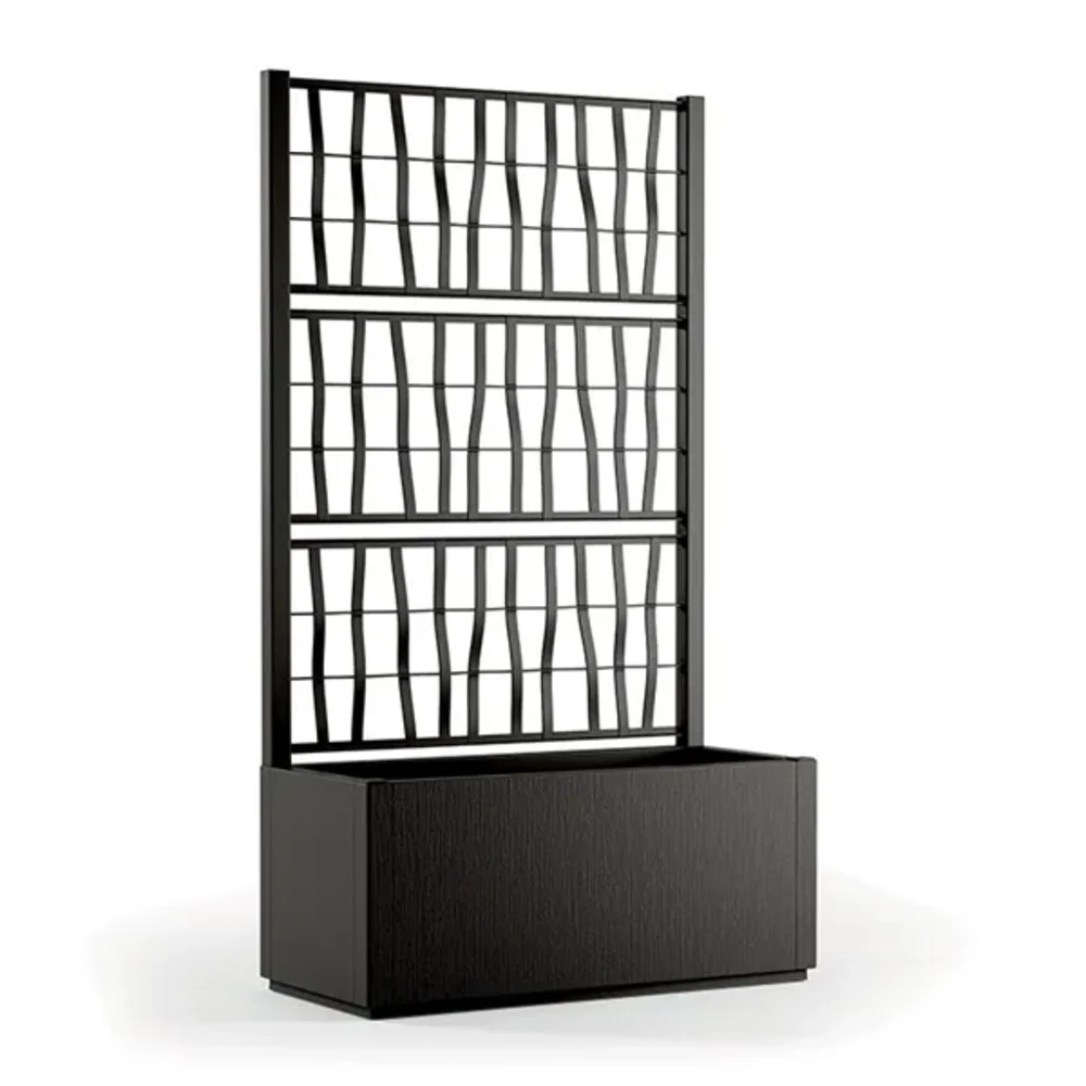 Правоаголна жардинерија Ethica со решетка е функционално и естетско решение за уредување на двор, тераса или балкон. Овој модел комбинира пространа правоаголна саксија со висока потпорна решетка, што овозможува садење на качувачки растенија и создавање природна декоративна преграда. Благодарение на својот модерен и балансиран дизајн, лесно се вклопува во различни типови на екстериер.