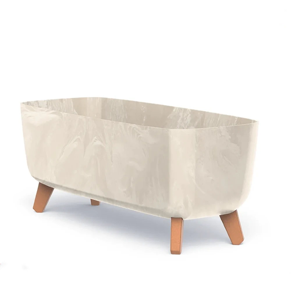 Дизајнот е создаден за да обезбеди лесно вклопување во различни простори. Нозете ја подигнуваат жардинеријата од подлогата, со што растенијата се заштитуваат од директен контакт со подот. Оваа карактеристика овозможува подобра циркулација и практичност при одржување.