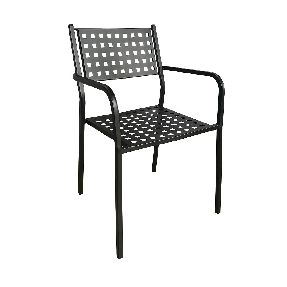 Метален стол со отвори е идеален избор за внатрешна и надворешна употреба, нудејќи издржливост, стабилност и стилски изглед. Неговата висококвалитетна конструкција од челик обезбедува цврстина, додека поцинкуваната заштита со правосано обложување го прави отпорен на надворешни влијанија. Овој стол е дизајниран да одговори на различни потреби, било да се користи на тераса, градина, ресторан или во домот.