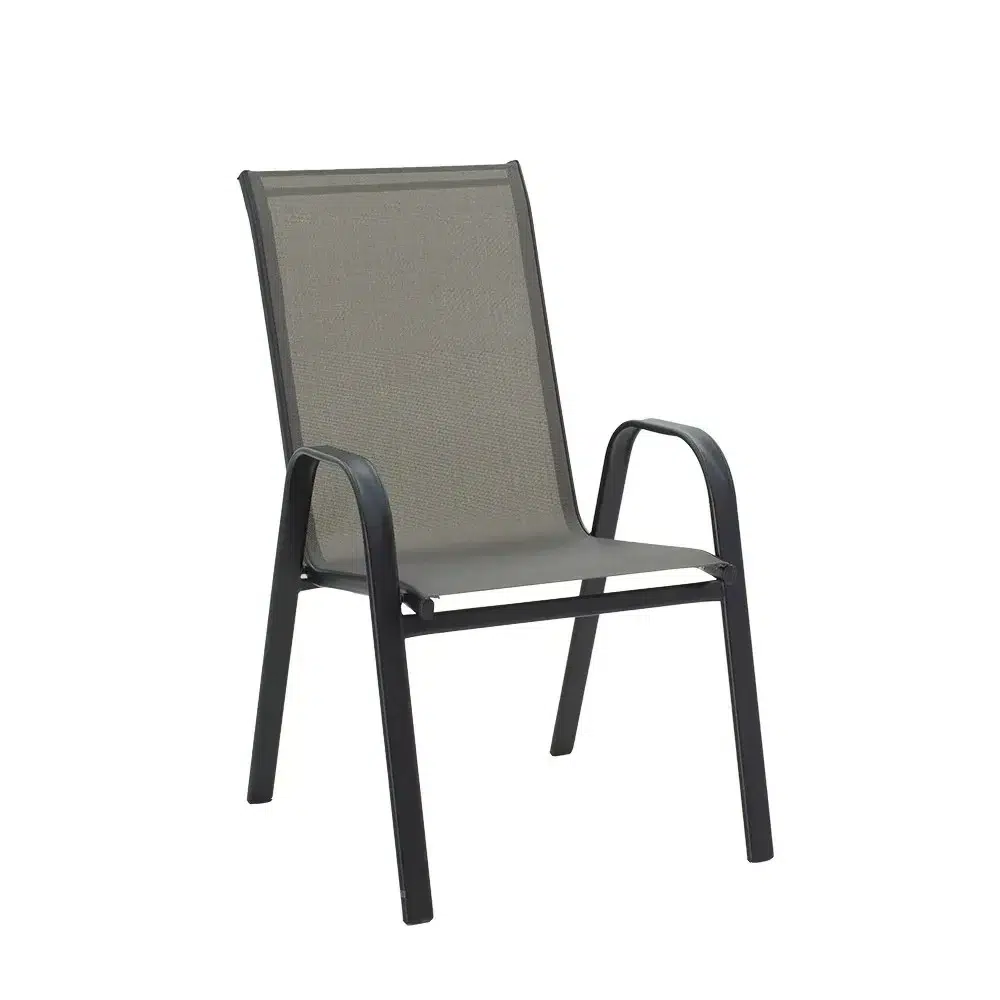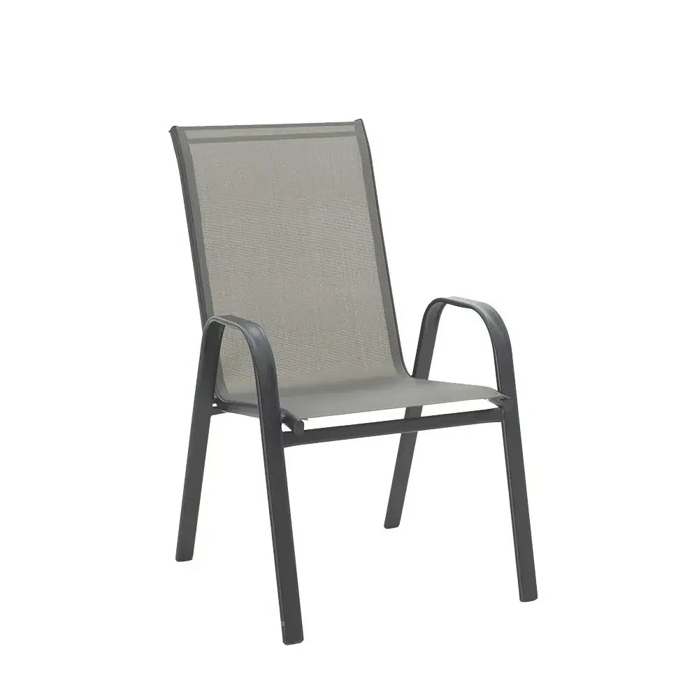 Дизајнот е внимателно избалансиран за да ги задоволи современите естетски барања. Сивата боја е неутрална и лесно се вклопува со други елементи во просторот. Седиштето и наслоните изработени од ПВЦ материјал придонесуваат за елегантен изглед.