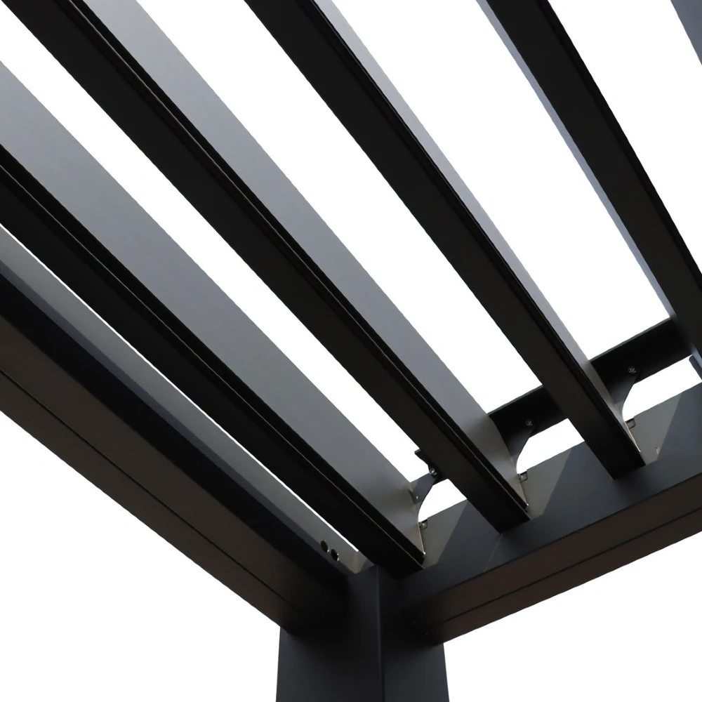 Алуминиумска Пергола Domi Louvered Pergola претставува совршено решение за модерно уредување на двор, тераса или градина. Со својот подвижен покрив (ламели), оваа пергола овозможува целосна контрола на сончевата светлина, сенката и вентилацијата.
