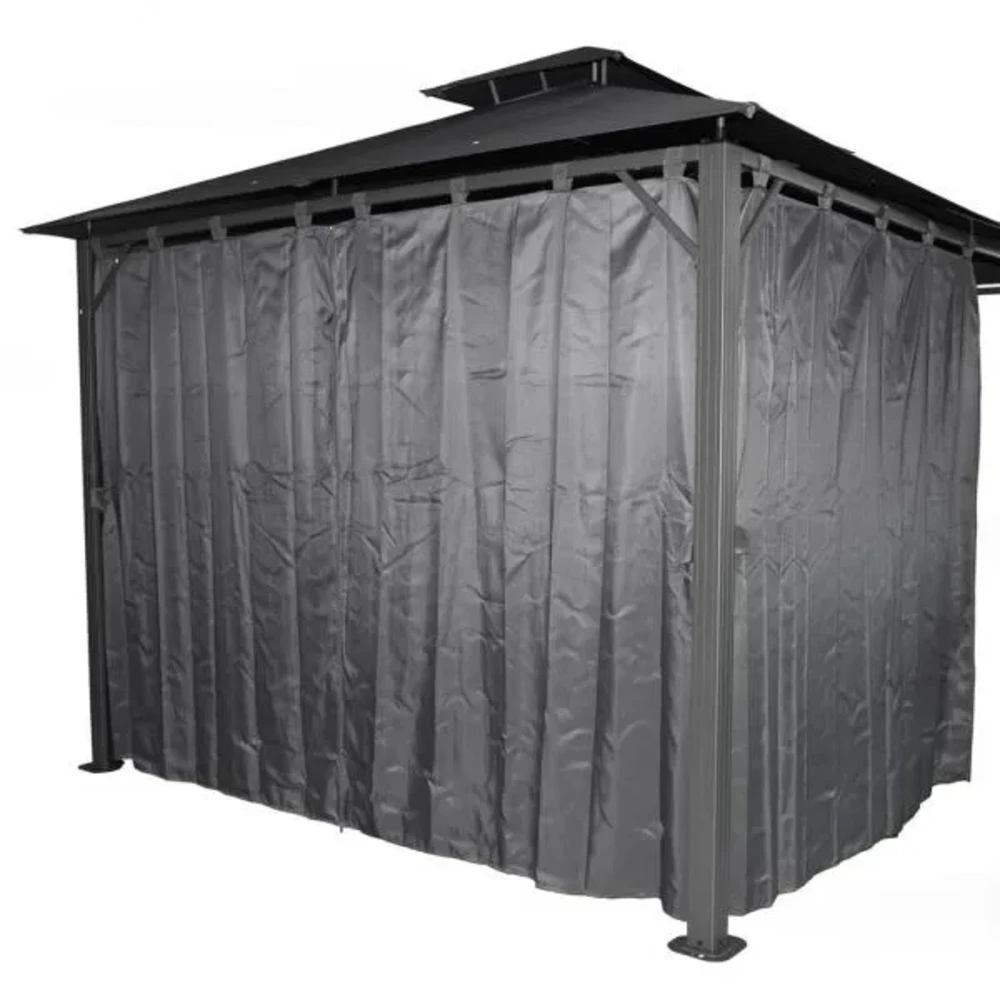 Метална тенда со завеси е совршен избор за секој што сака да создаде пријатен и заштитен простор на својот двор, тераса или градина. Нејзината стабилна метална конструкција обезбедува цврстина и трајност, што ја прави отпорна на различни временски услови. Изработена од високо квалитетни материјали, тендата гарантира долгогодишна употреба без загуба на стабилноста и изгледот.