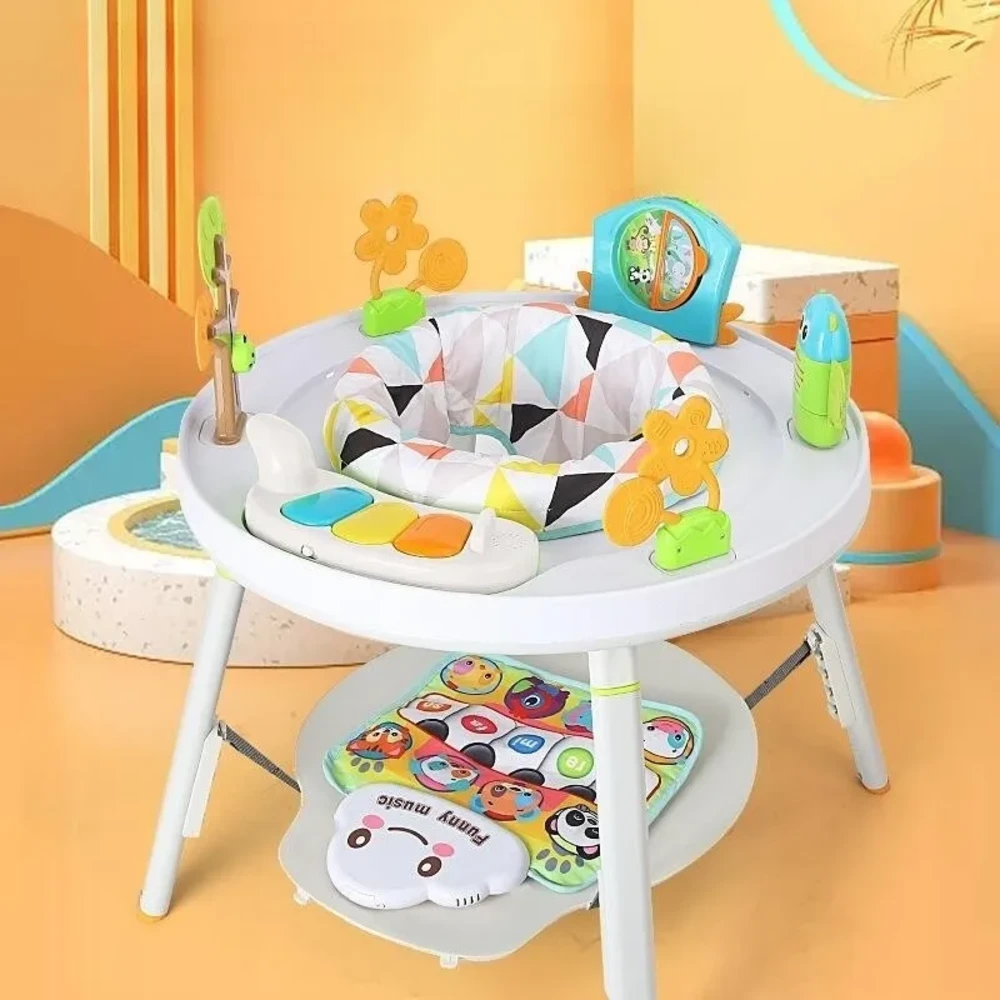 Овој центар за активности има вградено музичко пијано со светкави светла. Играчката го стимулира слухот и видот на детето, додека истовремено го учи на првите музички ноти.