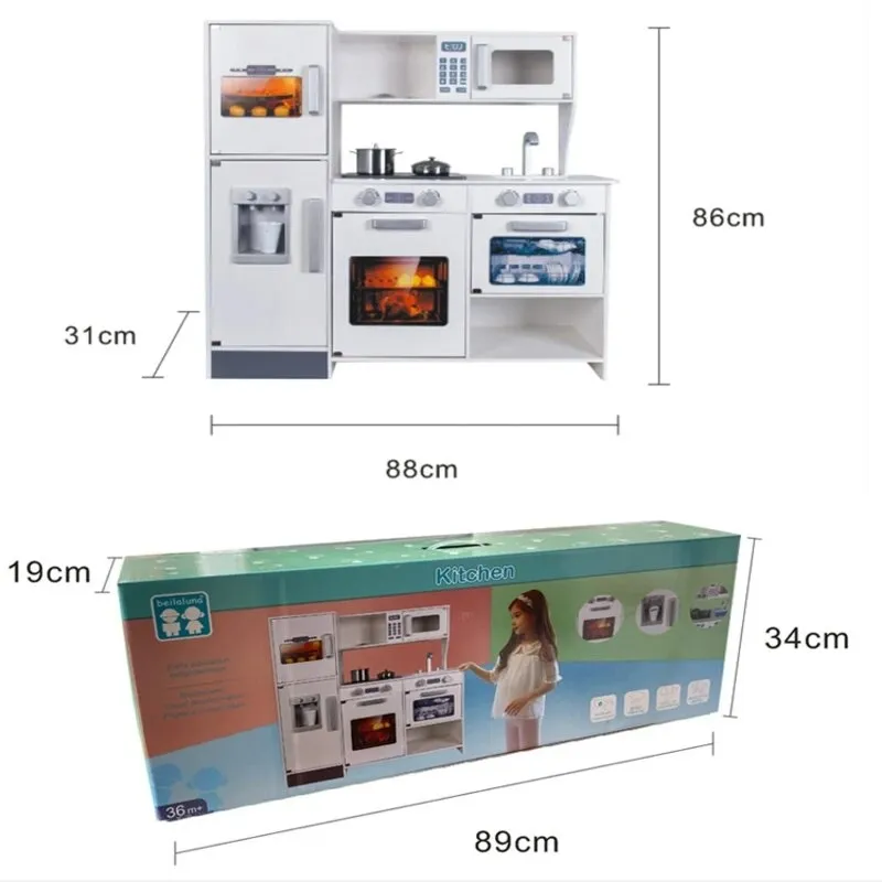Со висина од 89 cm, ширина од 34 cm и длабочина од 19 cm, кујната е совршено прилагодена за деца од 5 до 13 години, но може да ја користат и постари деца кои сакаат да продолжат да играат улоговни игри.