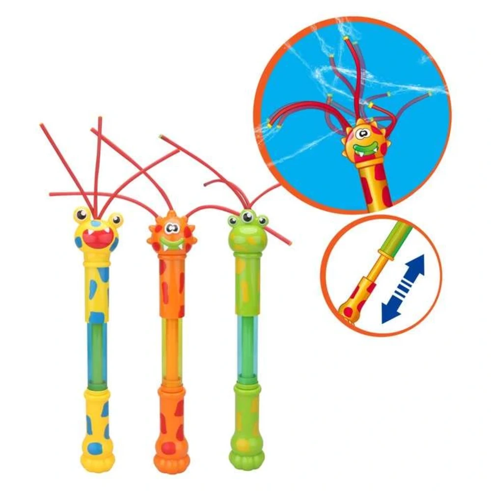 Овој воден пиштол се издвојува од класичните модели благодарение на својата 360° прскачка функција. Флексибилните црева создаваат повеќе млазови истовремено, што ја прави играта уште подинамична и непредвидлива. Децата ќе уживаат во секој момент додека се обидуваат да избегнат прскање од сите страни.