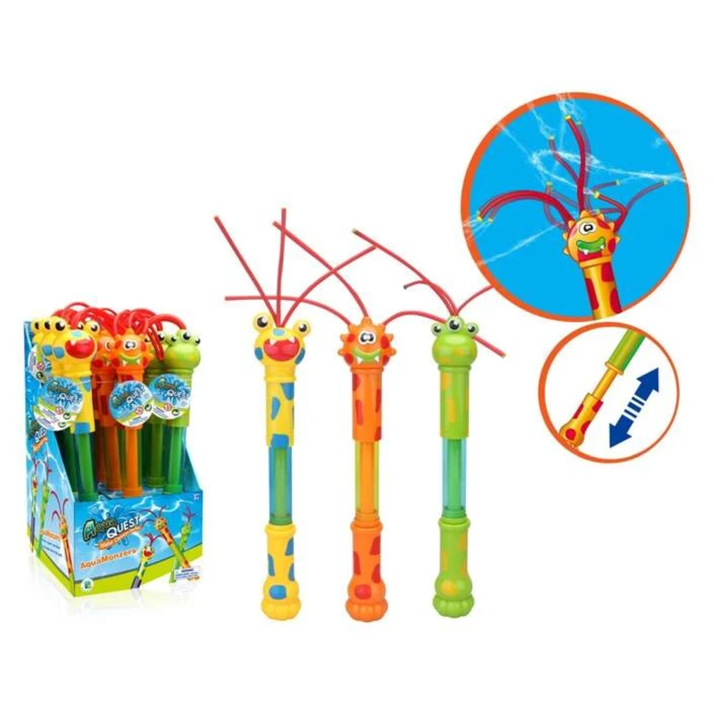 Aqua Quest Monster воден пиштол е уникатна играчка за вода за деца што носи ново ниво на забава во летните денови. Со иновативен дизајн и флексибилни црева, овој воден пиштол за деца испрскува вода во сите правци, создавајќи вистински хаос од смеа и освежување во двор, на плажа или покрај базен.