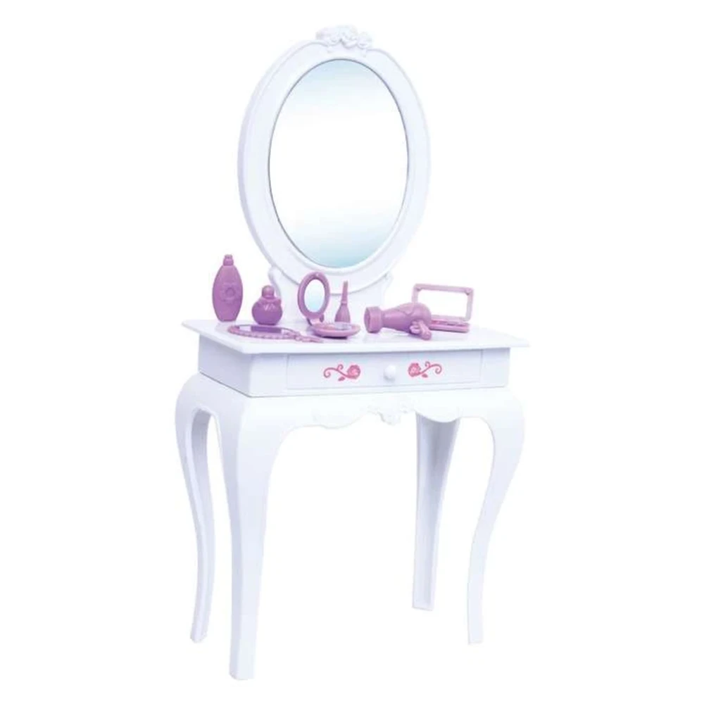 Масата за облекување со огледало дава дополнителна димензија на играта. Детето може да се чувствува како вистински стилист.
