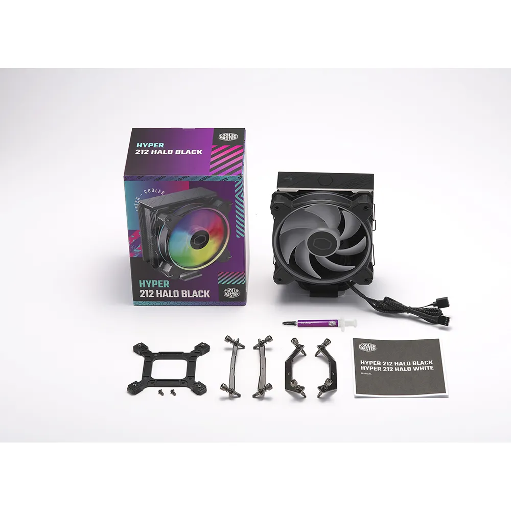 HYPER 212 HALO BLACK користи 120mm Halo² ARGB вентилатор со PWM контрола, кој автоматски ја прилагодува брзината според температурата. Максималната брзина од 2050 RPM овозможува импресивно ладење, додека нивото на бучава останува само 27 dBA.