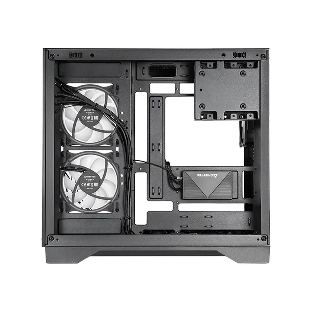 Со вкупно 6 прединсталирани 120mm A-RGB вентилатори, Chieftec Visio обезбедува оптимален проток на воздух без потреба од дополнителни модификации. Три вентилатори на дното, два од страната на матичната плоча и еден на задниот дел гарантираат совршен баланс меѓу перформанси и тишина.