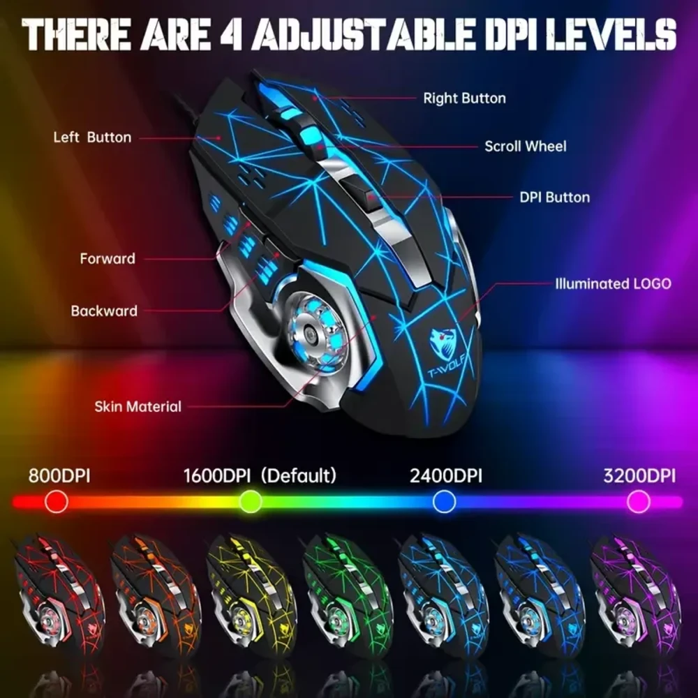 T-WOLF TF900 е опремена со механички стил на копчиња кои нудат прецизен клик и одличен одзив. Нема одложување, нема грешки — само чиста гејмерска ефикасност.
