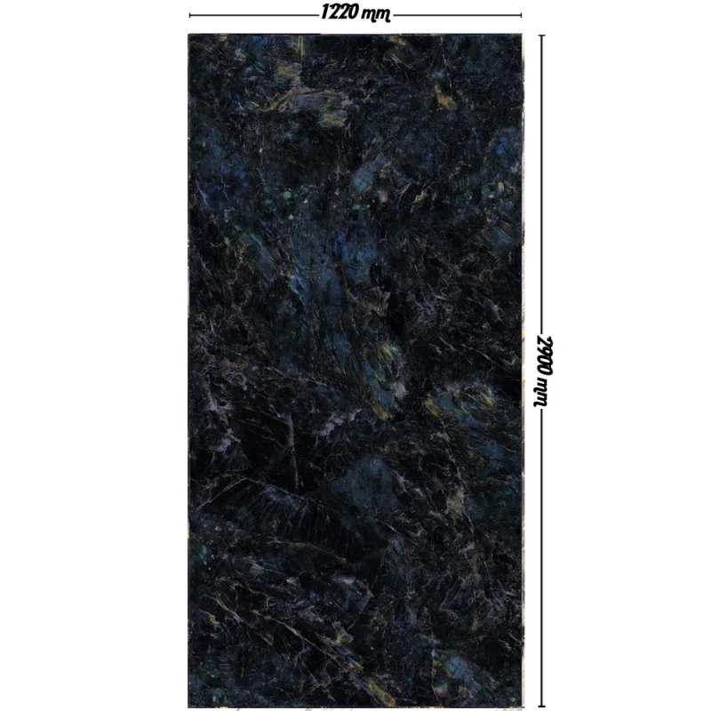 Мермерен ПВЦ панел Alabaster Veil е создаден за корисници кои сакаат уникатна, длабока и драматична текстура во својот дом или деловен простор. Панелот комбинира темни црни мермерни слоеви, суптилни сини и зелени минерални рефлексии и природни вени кои ја збогатуваат текстурата. Овој визуелен ефект создава чувство на длабочина, мистичност и елегантен луксуз.