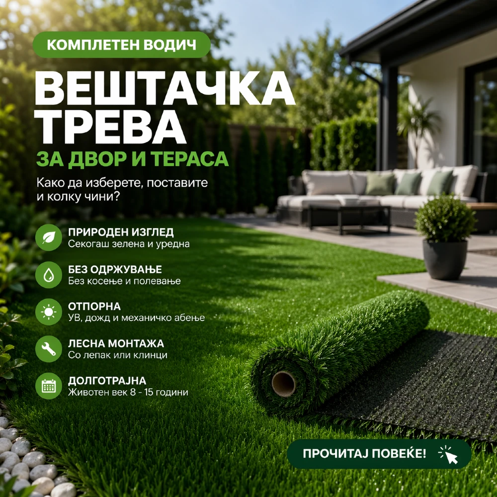 Вештачката трева станува сѐ попопуларно решение за уредување на дворови, тераси и балкони. Причината е едноставна – нуди природен изглед без потреба од косење, полевање или постојано одржување. Денес Вештачка трева 2026 година, сѐ повеќе луѓе во Македонија избираат вештачка трева како долгорочно и практично решение за својот простор.